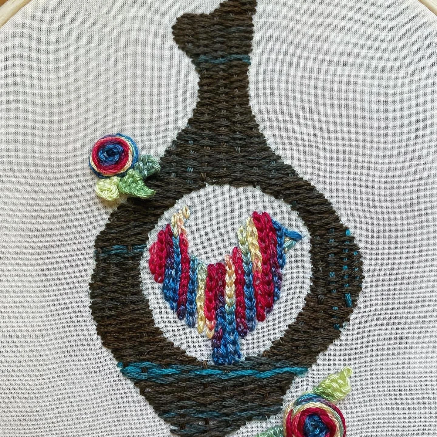 The weaverbird is our mascot (naturally) so I used woven embroidery to portray it.